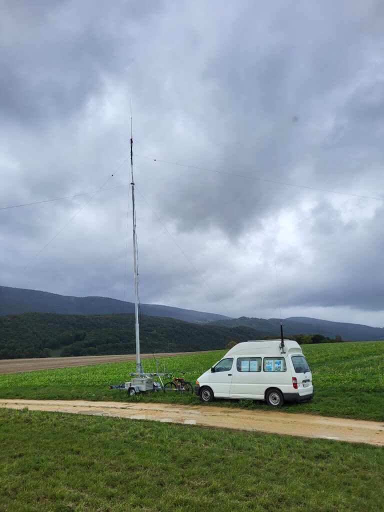 Florian HB9HLH et Yves HB9DTX ont participé. Deux stations (dipôle 80m et verticale VHF-UHF) étaient montées sur la remorque mât de HB9HLH. Les stations étaient dans le fourgon.